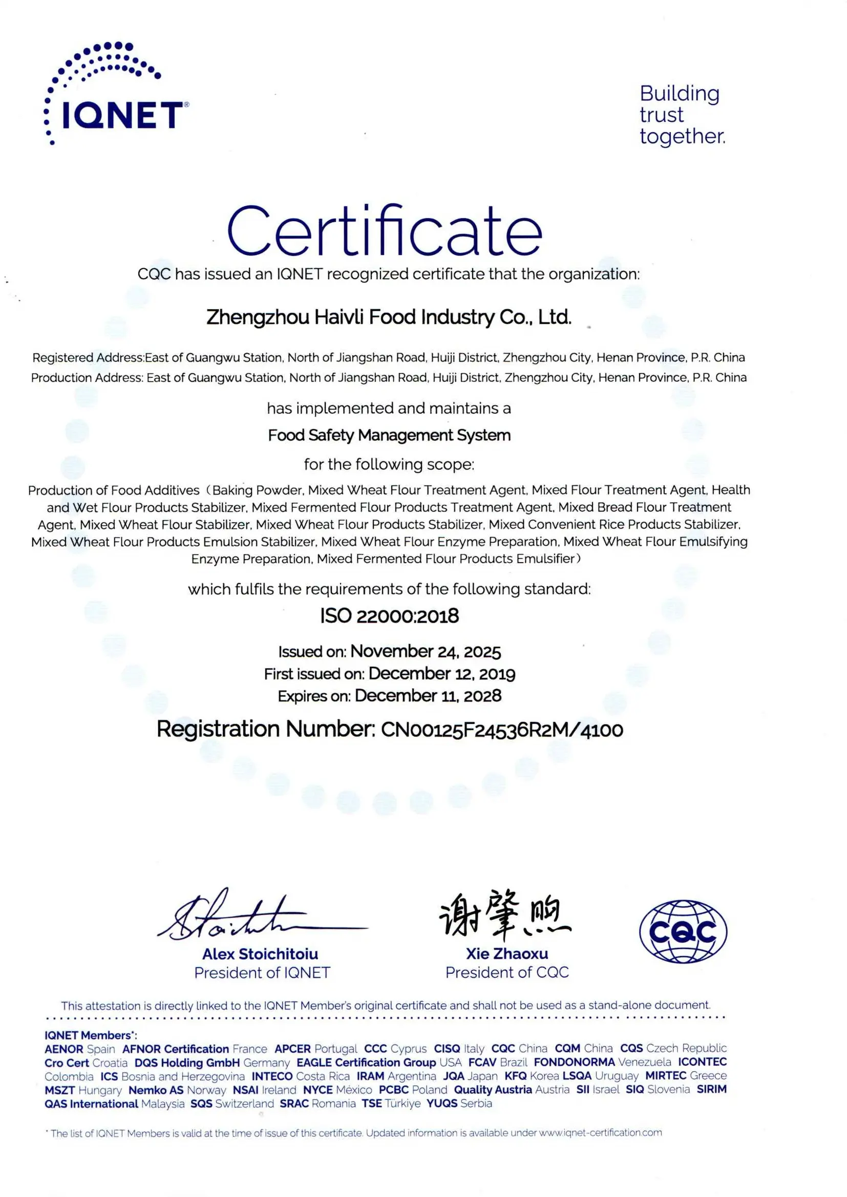22000国际认证证书